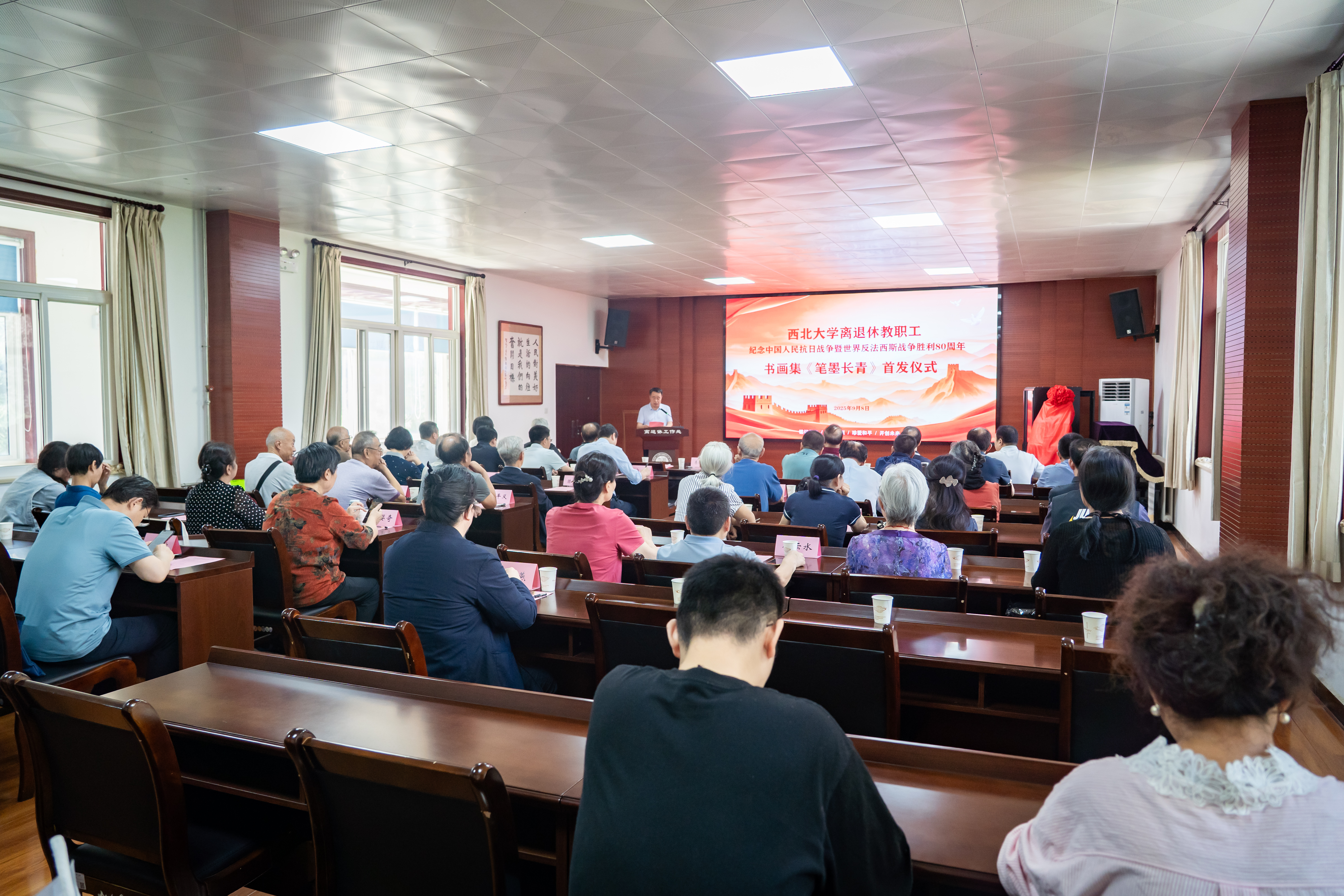 9月8日,乐投在线离退休教职工纪念中国人民抗日战争暨世界反法西斯战争胜利80周年书画集《笔墨长青》首发仪式在长安校区举行。校党委常委、副校长李振海出席仪式并致辞,校离退休工作领导小组成员单位负责人、离退休党委委员、《笔墨长青》编委会成员和书画作品作者等50余人参加活动。仪式由离退休党委负责人主持。