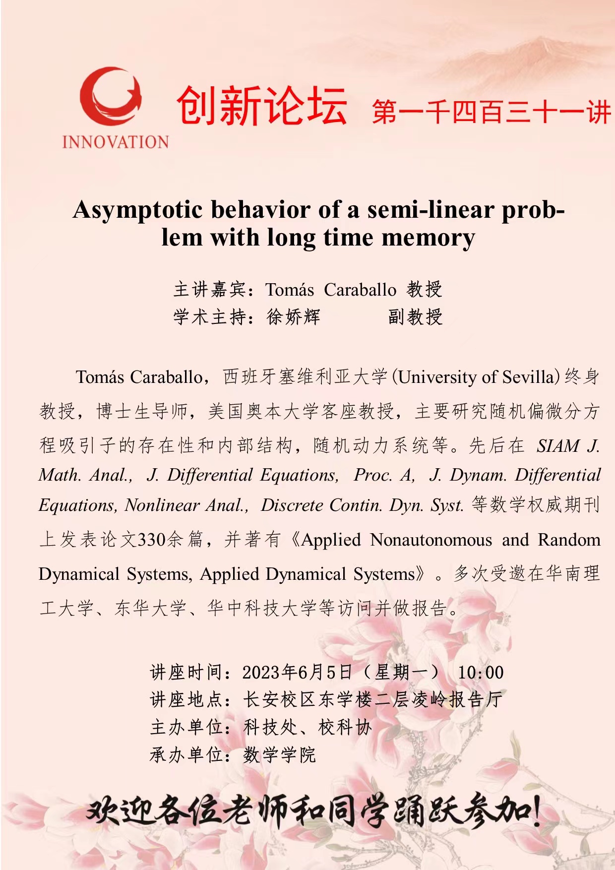 Tomás Caraballo 教授 乐投在线创新论坛第一千四百三十一讲:Asymptotic behavior of a semi-linear problem with long time memory 讲座时间 2023年6月5日(星期一) 10:00 讲座地点 长安校区东学楼二层凌岭报告厅 讲座人介绍 Tomás Caraballo 教授 讲座内容