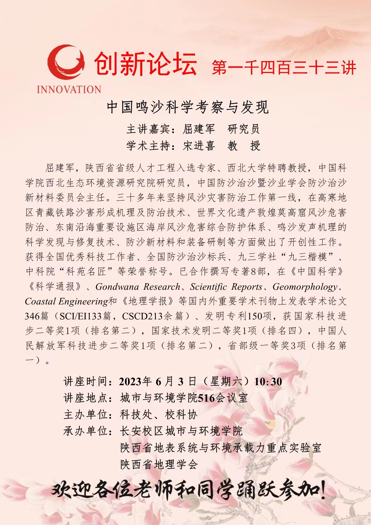 乐投在线创新论坛第一千四百三十三讲:中国鸣沙科学考察与发现