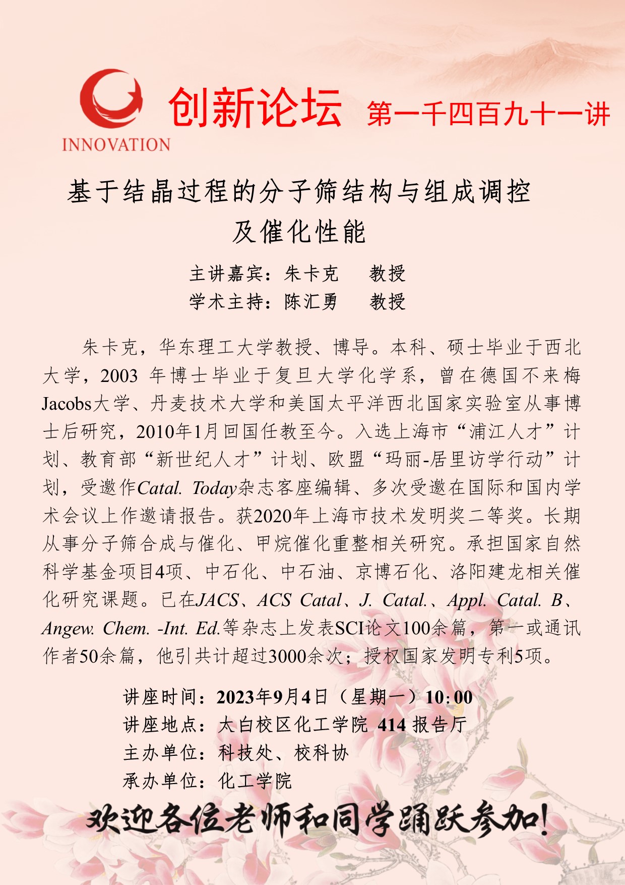 朱卡克 教授 乐投在线创新论坛第一千四百九十一讲:基于结晶过程的分子筛结构与组成调控及催化性能 讲座时间 2023年9月4日(星期一)10:00 讲座地点 太白校区化工学院414报告厅 讲座人介绍 朱卡克 教授 讲座内容