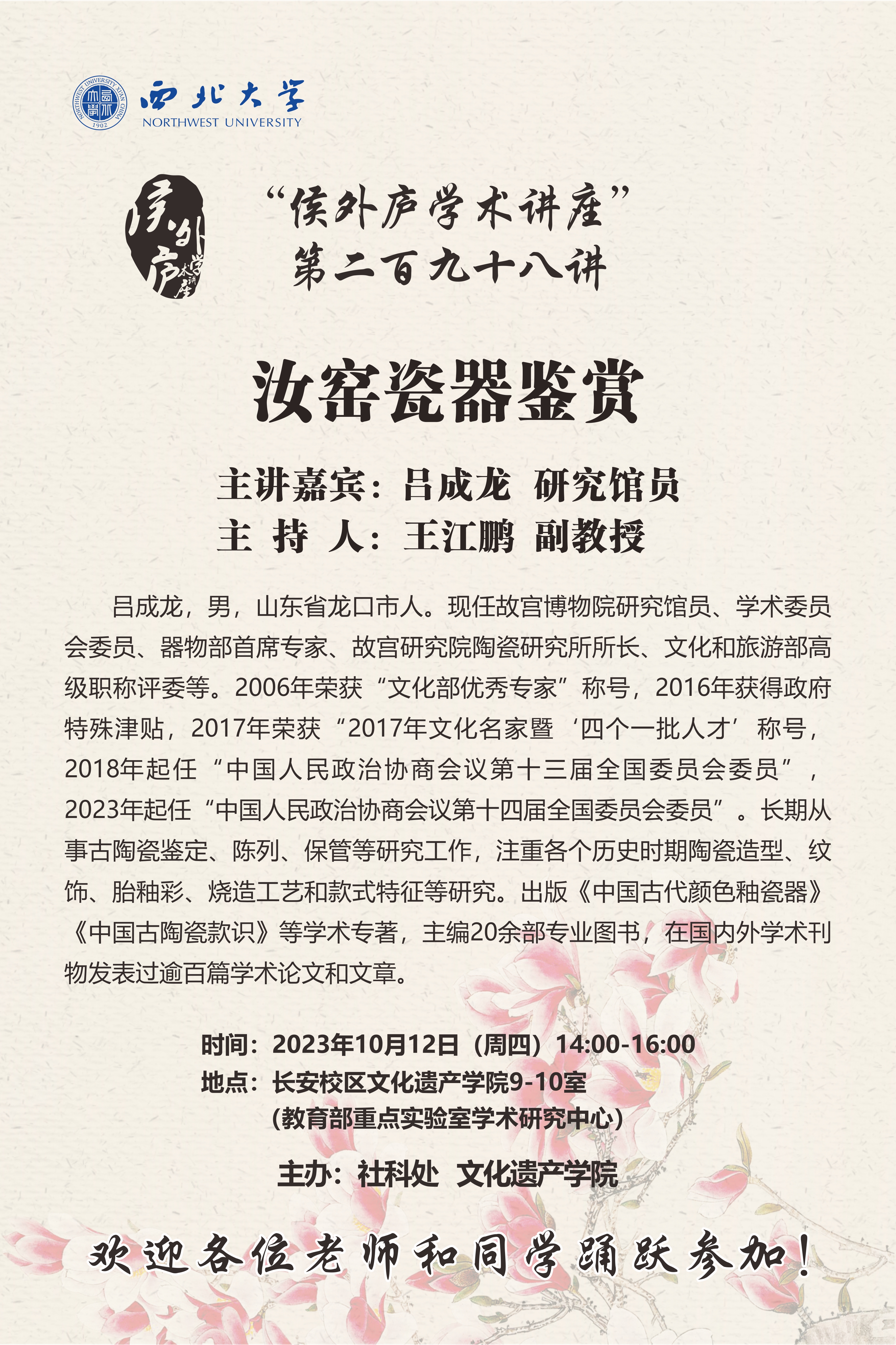 侯外庐学术讲座第二百九十八讲:汝窑瓷器鉴赏