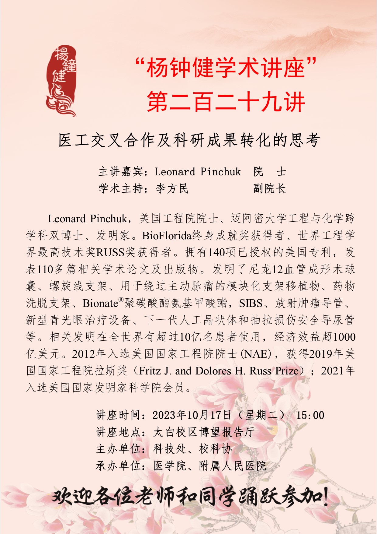 “杨钟健学术讲座”第二百二十九讲:医工交叉合作及科研成果转化的思考