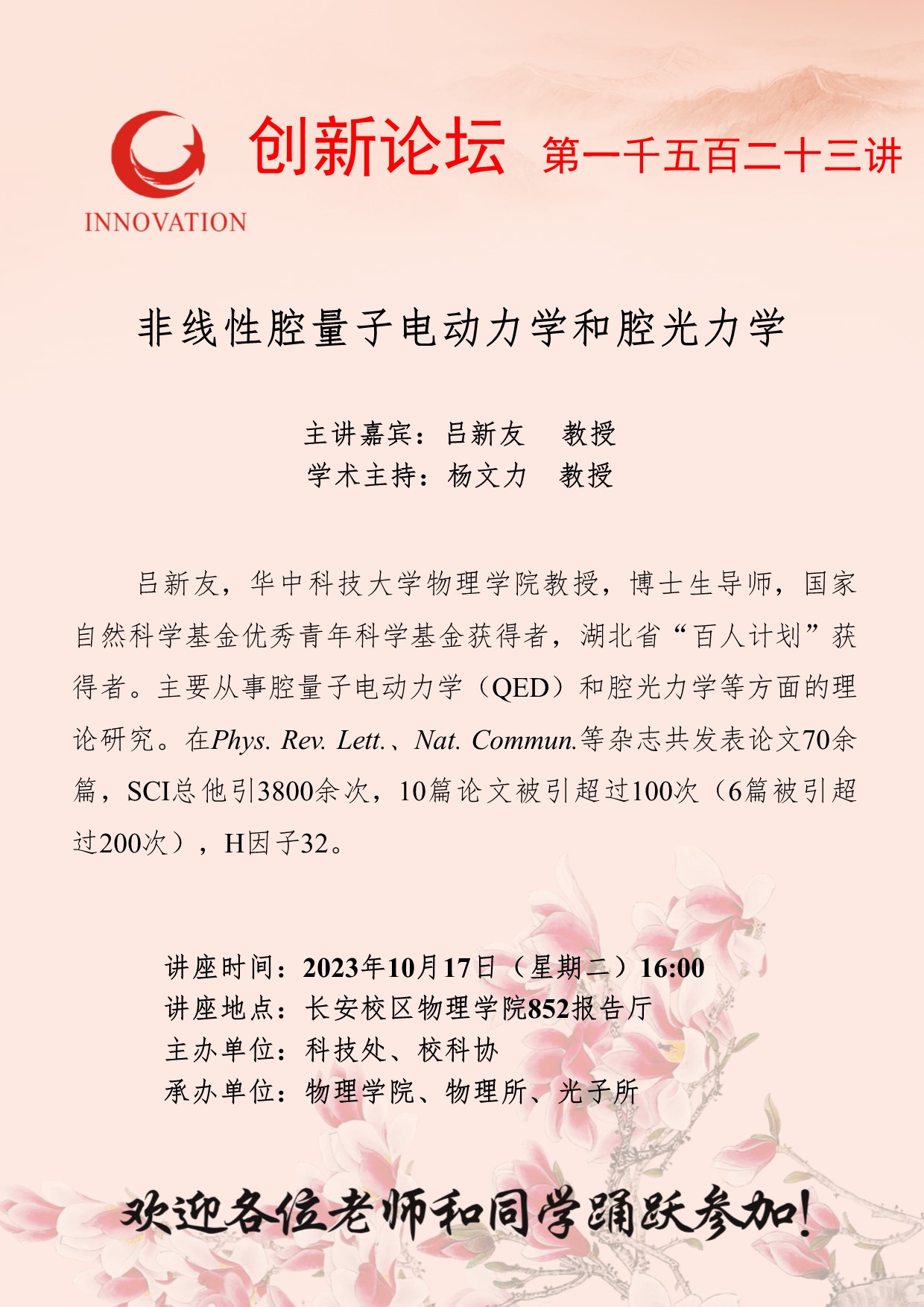 吕新友 教授 乐投在线创新论坛第一千五百二十三讲:非线性腔量子电动力学和腔光力学 讲座时间 2023年10月17日(星期二)16:00 讲座地点 长安校区物理学院852报告厅 讲座人介绍 吕新友 教授 讲座内容
