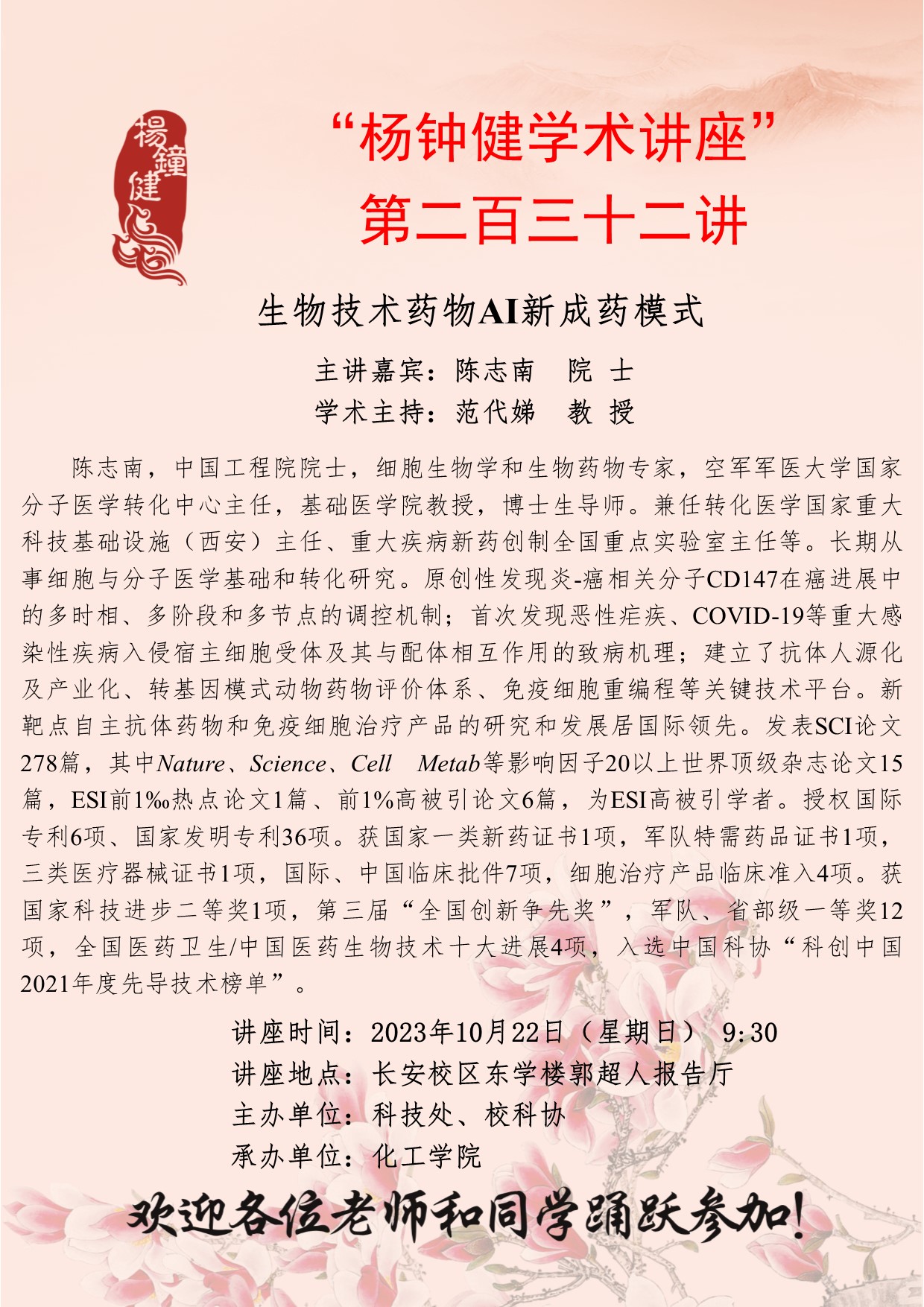 “杨钟健学术讲座”第二百三十二讲:生物技术药物AI新成药模式