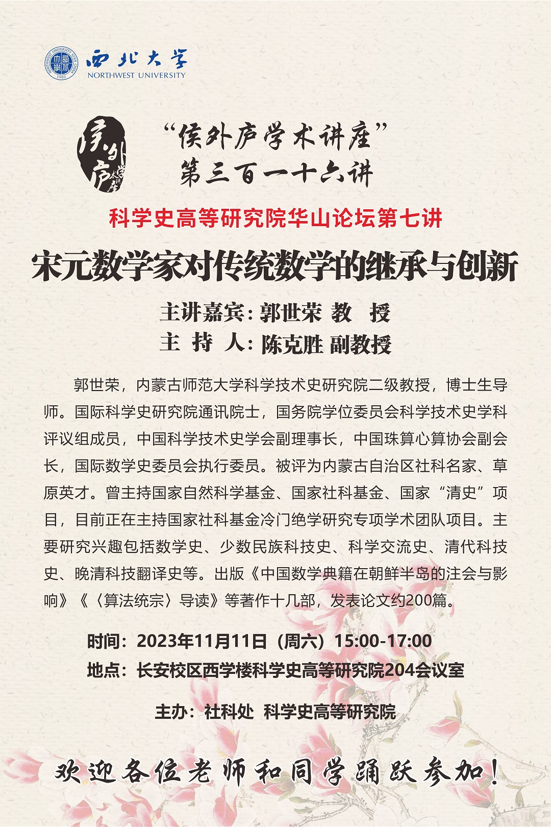 侯外庐学术讲座第三百一十六讲:宋元数学家对传统数学的继承与创新