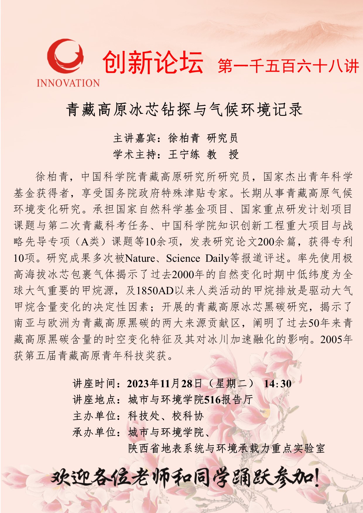 徐柏青 研究员 乐投在线创新论坛第一千五百六十八讲:青藏高原冰芯钻探与气候环境记录 讲座时间 2023年11月28日(星期二) 14:30 讲座地点 城市与环境学院516报告厅 讲座人介绍 徐柏青 研究员 讲座内容