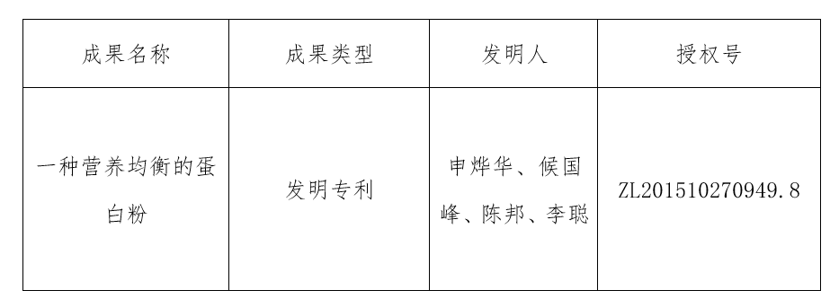 发明专利:“一种营养均衡的蛋白粉”。