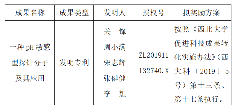 按照《乐投在线促进科技成果转化实施办法》(西大科〔2019〕5号)相关规定,拟对乐投在线生命科学学院关锋教授作为成果负责人的1项发明专利权实施转化,现将相关信息公示如下: