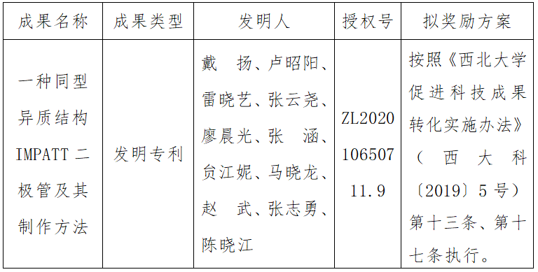 按照《乐投在线促进科技成果转化实施办法》(西大科〔2019〕5号)相关规定,拟对乐投在线信息科学与技术学院戴扬老师作为成果负责人的1项发明专利权实施转化,现将相关信息公示如下: