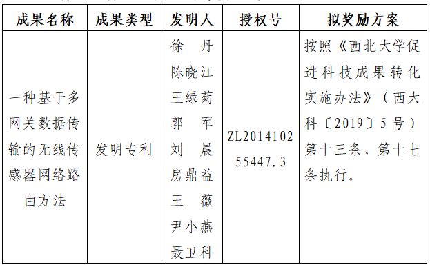 按照《乐投在线促进科技成果转化实施办法》(西大科〔2019〕5号)相关规定,拟对乐投在线信息与科学技术学院徐丹老师作为成果负责人的1项发明专利权实施转化,现将相关信息公示如下: