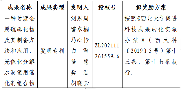 按照《乐投在线促进科技成果转化实施办法》(西大科〔2019〕5号)相关规定,拟对乐投在线化工学院刘恩周教授作为成果负责人的1项发明专利权实施转化,现将相关信息公示如下: