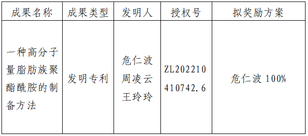按照《乐投在线促进科技成果转化实施办法》(西大科〔2019〕5号)相关规定,拟对乐投在线化工学院危仁波教授作为成果负责人的1项发明专利权实施转化,现将相关信息公示如下: