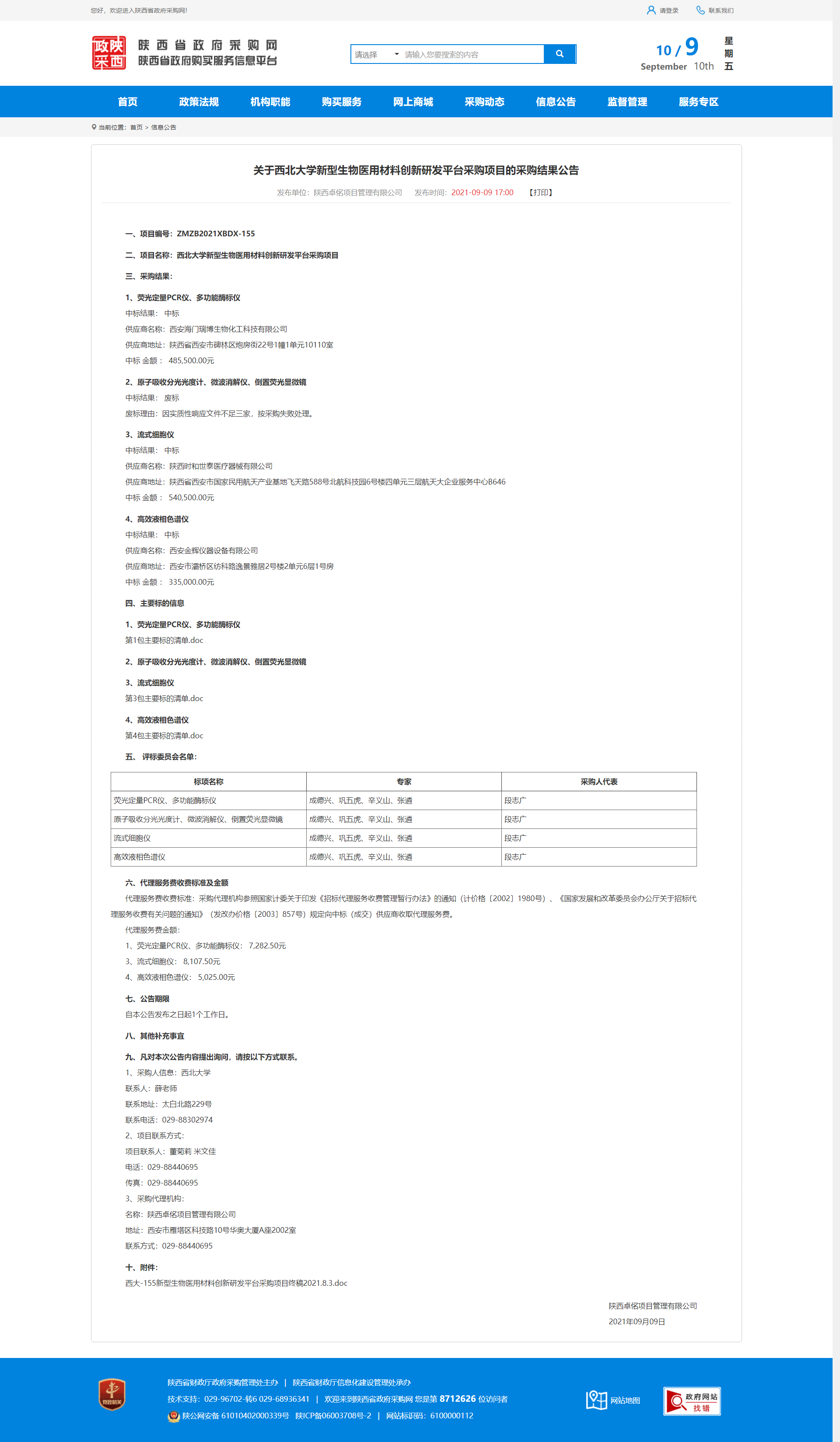 关于乐投在线新型生物医用材料创新研发平台采购项目的采购结果公告 作者: 编辑:采购与招标办公室 时间:2021-09-10 原公告地址:http://www.ccgp-shaanxi.gov.cn/notice/noticeDetail.do?noticeguid=8a85be347bc00296017bc9c746595f00