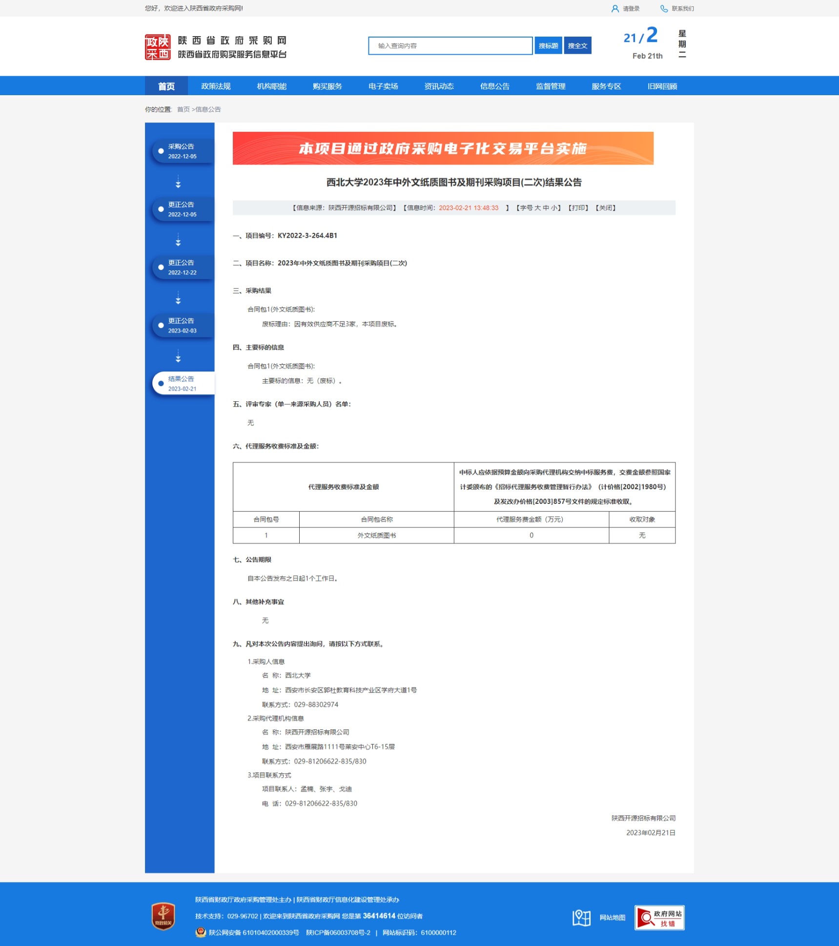 乐投在线2023年中外文纸质图书及期刊采购项目(二次)结果公告 作者: 编辑:采购与招标办公室 时间:2023-02-21 原公告链接:http://www.ccgp-shaanxi.gov.cn/freecms/site/shaanxi/ggxx/info/2023/8a69c672865ced8c0186724a037f638f.html?noticeType=001006¬iceId=37842b27-b1ac-11ed-9a8e-08c0eb20c666