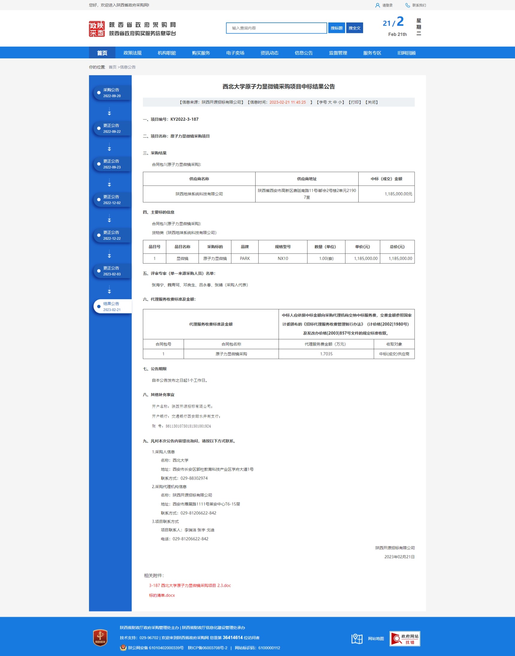 乐投在线原子力显微镜采购项目中标结果公告 作者: 编辑:采购与招标办公室 时间:2023-02-21 原公告链接:http://www.ccgp-shaanxi.gov.cn/freecms/site/shaanxi/ggxx/info/2023/8a69c672865ced8c0186720ee0ca4629.html?noticeType=001021¬iceId=0563be58-b19b-11ed-9a8e-08c0eb20c666