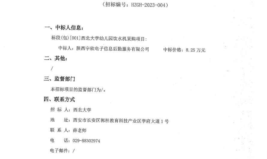 乐投在线幼儿园饮水机采购项目成交结果公示 作者: 编辑:采购与招标办公室 时间:2023-03-28 原公告链接:http://bulletin.sntba.com/resultBulletin/2023-03-27/540317.html