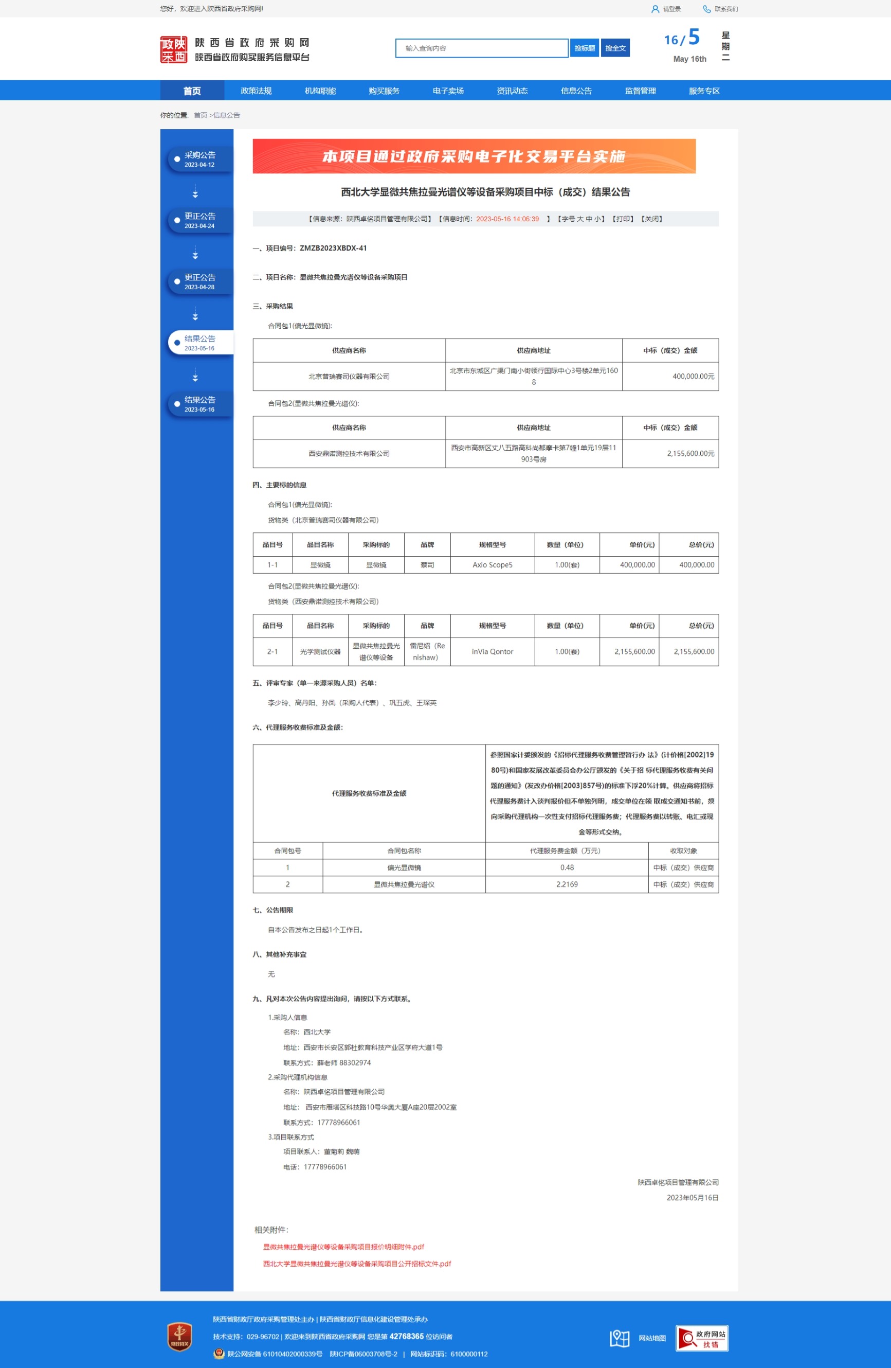 乐投在线显微共焦拉曼光谱仪等设备采购项目第1、2包中标(成交)结果公告 作者: 编辑:采购与招标办公室 时间:2023-05-16 原公告链接:http://www.ccgp-shaanxi.gov.cn/freecms/site/shaanxi/ggxx/info/2023/8a69c42187bb9c05018822b06eb61ad4.html?noticeType=001021¬iceId=d4ff6b9d-f3b0-11ed-9a8e-08c0eb20c666
