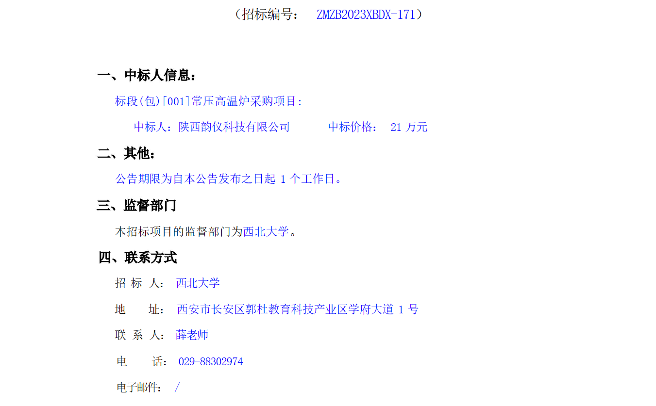 乐投在线常压高温炉采购项目结果公告 作者: 编辑:采购与招标办公室 时间:2023-08-01 原公告链接:http://bulletin.sntba.com/resultBulletin/2023-08-01/599542.html