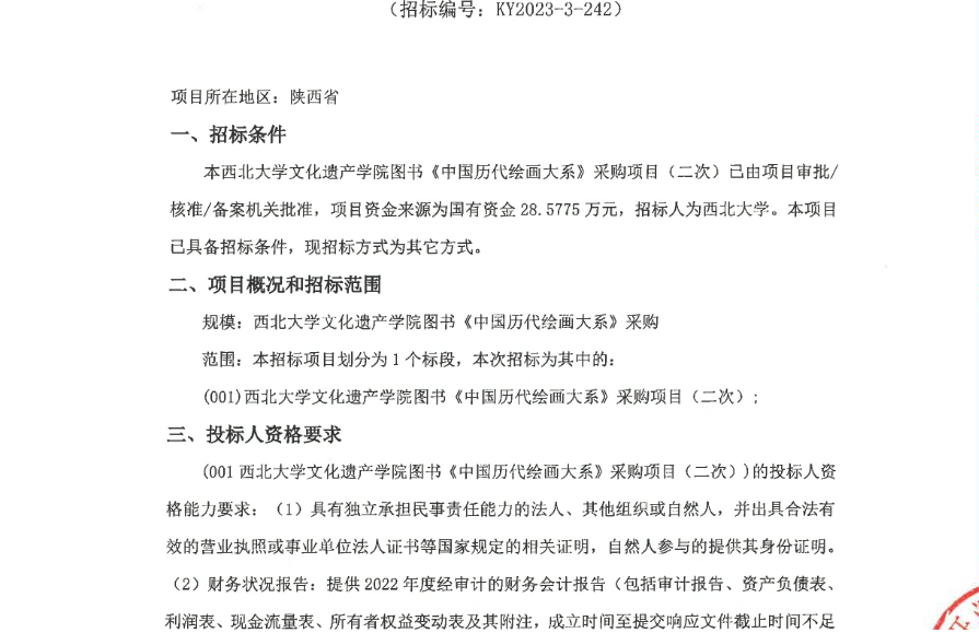 乐投在线文化遗产学院图书《中国历代绘画大系》采购项目(二次)竞争性谈判公告 作者: 编辑:采购与招标办公室 时间:2023-09-22 原公告链接:http://bulletin.sntba.com/biddingBulletin/2023-09-21/678342.html