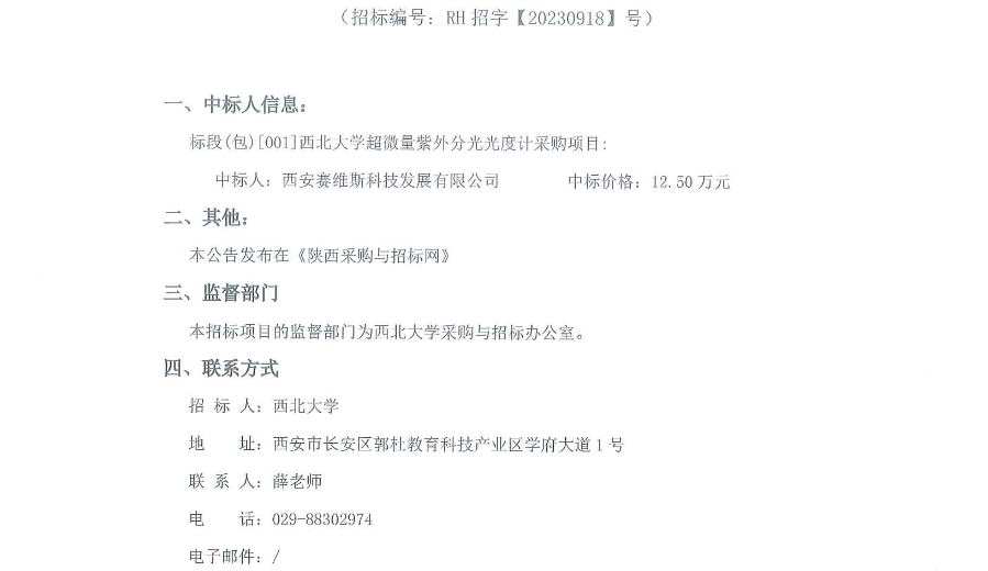 乐投在线超微量紫外分光光度计采购项目成交结果公告 作者: 编辑:采购与招标办公室 时间:2023-10-12 原公告链接:http://bulletin.sntba.com/resultBulletin/2023-10-12/722502.html