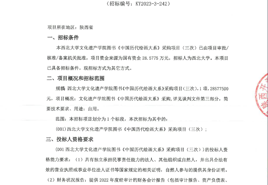 乐投在线文化遗产学院图书《中国历代绘画大系》采购项目(三次)竞争性谈判公告 作者: 编辑:采购与招标办公室 时间:2023-10-17 原公告链接:http://bulletin.sntba.com/biddingBulletin/2023-10-17/734748.html