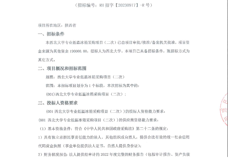 乐投在线专业低温冰箱采购项目(二次)竞争性磋商公告 作者: 编辑:采购与招标办公室 时间:2023-10-25 原公告链接:http://bulletin.sntba.com/biddingBulletin/2023-10-24/752921.html