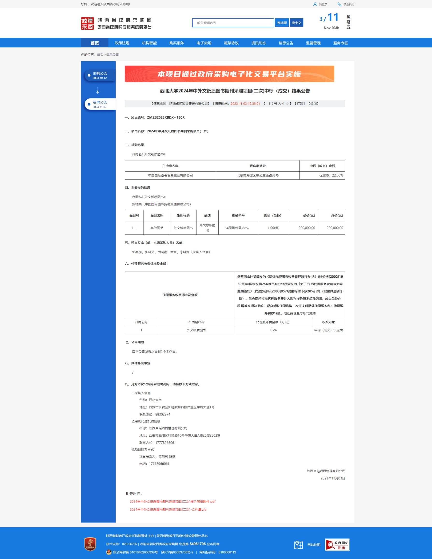 乐投在线2024年中外文纸质图书期刊采购项目(二次)中标(成交)结果公告