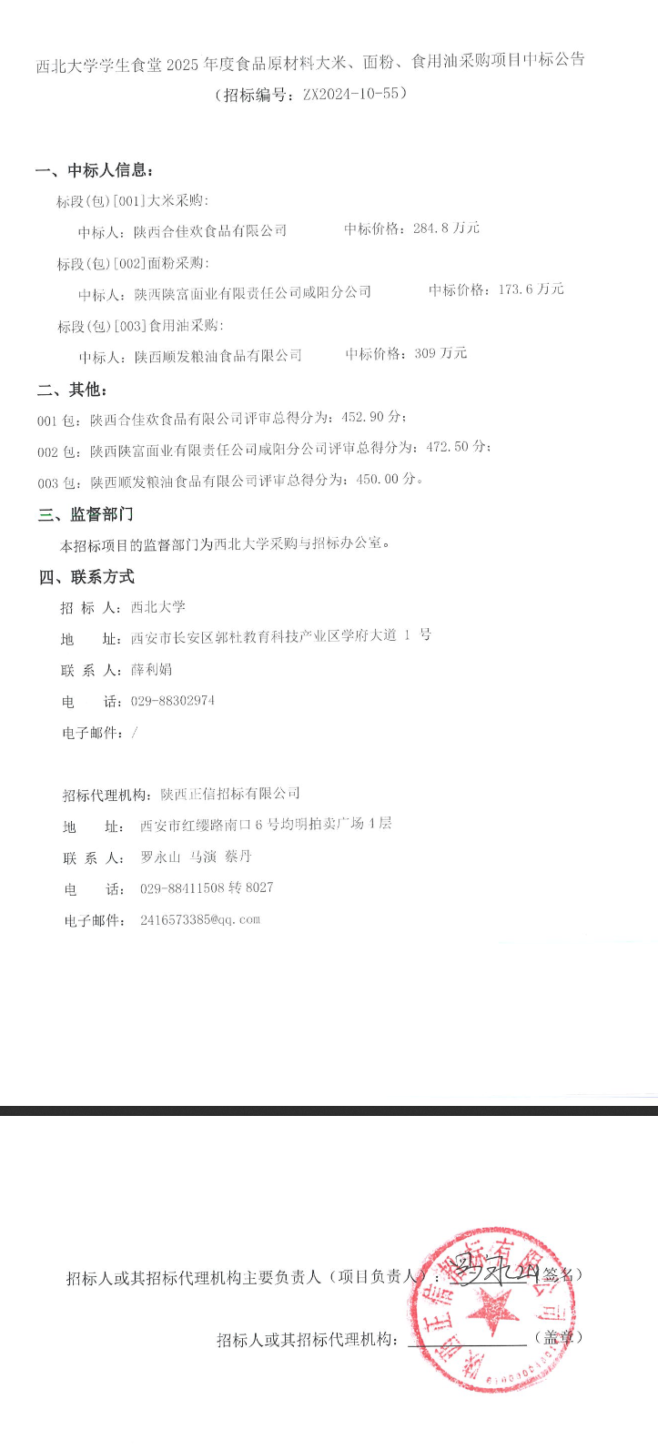 乐投在线学生食堂2025年度食品原材料大米、面粉、食用油采购项目中标公告
