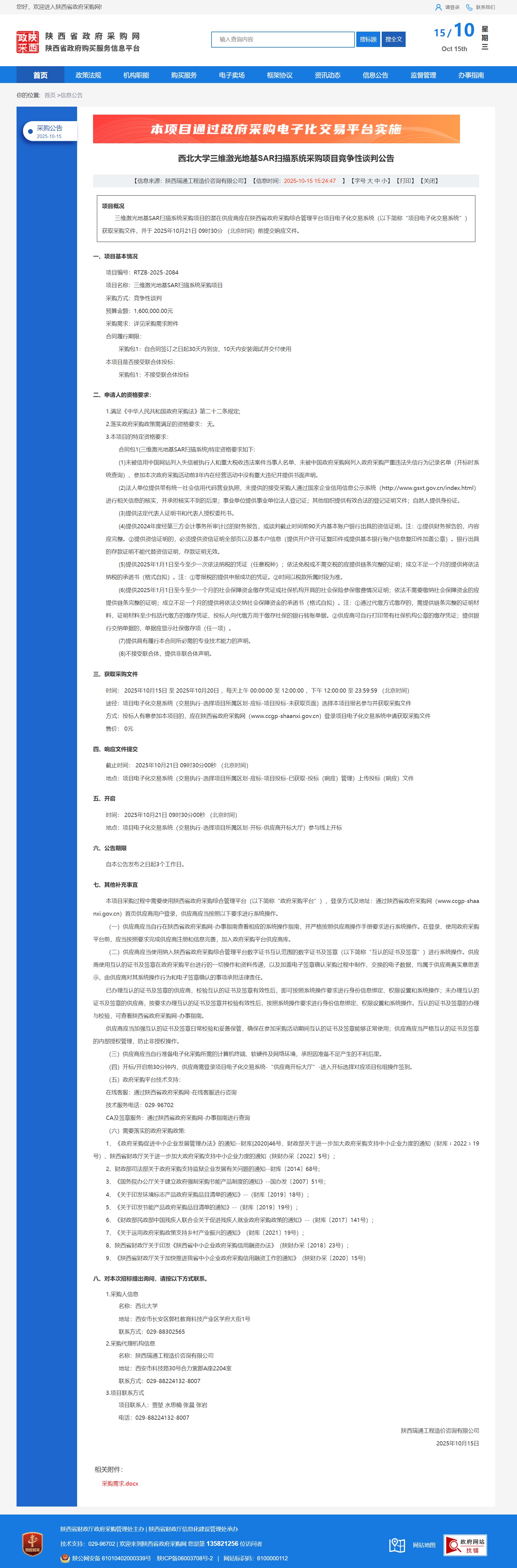 乐投在线三维激光地基SAR扫描系统采购项目竞争性谈判公告
