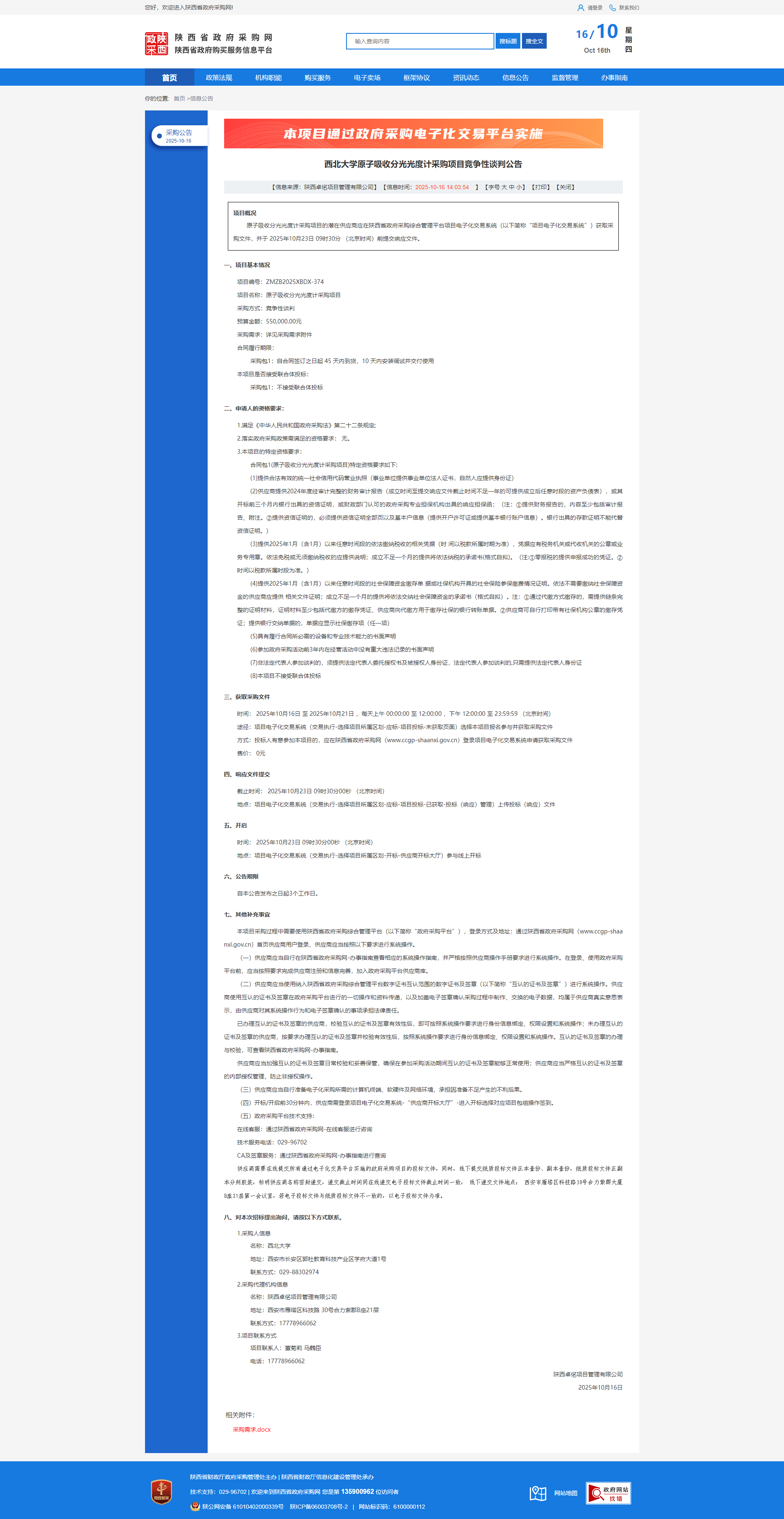 乐投在线原子吸收分光光度计采购项目竞争性谈判公告