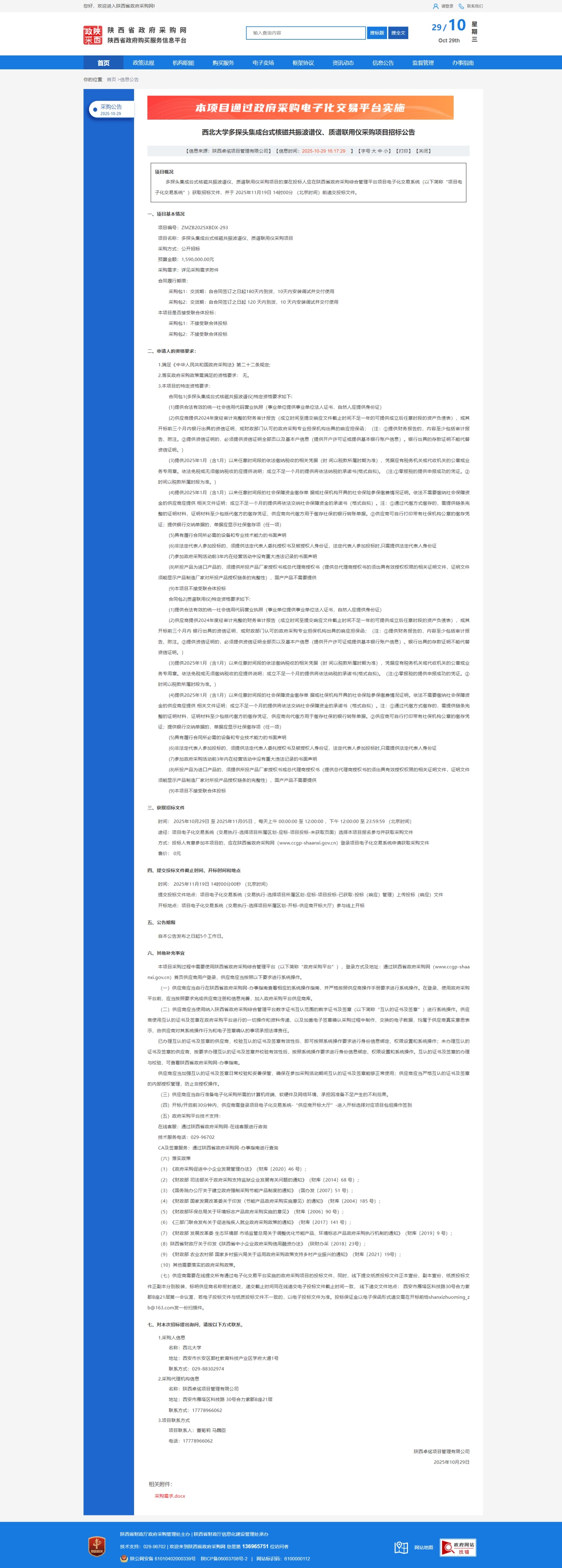乐投在线多探头集成台式核磁共振波谱仪、质谱联用仪采购项目招标公告 作者:国有资产管理处 编辑:国有资产管理处 时间:2025-10-29 原公告链接:https://www.ccgp-shaanxi.gov.cn/freecms/site/shaanxi/ggxx/info/2025/8a69c54f99f77a8f019a2efec46e4a64.html?noticeType=001011¬iceId=e7208489-b4a1-11f0-8063-08c0eb20c666